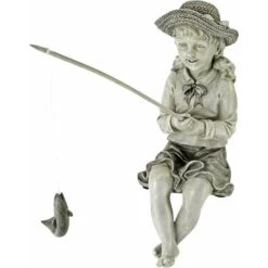 Grande Prise De PĂȘcheuse Statue De PĂȘcheur Pour Jardin, PolyrĂ©sine, Deux Tons Pierre, Filles
