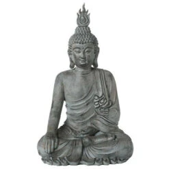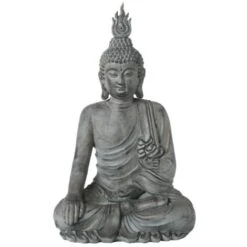 ATMOSPHERA Statue De Bouddha Assis Grand Modèle – Gris – H 65 Cm – Livraison Gratuite