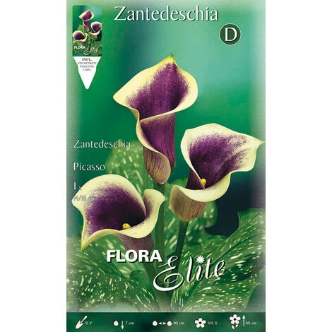 La Calla Zadenteschia Picasso atteint jusqu’Ă 40 cm et fleurit de juillet Ă septembre.Â