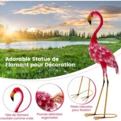 - 【Ensemble complet de statues de flamants roses】L’emballage contient 2 sculptures de flamants roses de 20 x 27 x 89 cm (L x l x H). La conception séparée leur permet de se tenir gracieusement à différentes occasions pour recevoir des compliments des passants, comme la cour, le patio, le bord de la piscine, le bord du lac, etc.