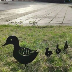 【Design intéressant】 – Utilisez ce groupe de sculptures métalliques boiteuses pour boiter après 3 mignons petits canards et 1 canard mère pour ajouter de la vie à votre jardin et ajouter un charme décalé à l’extérieur