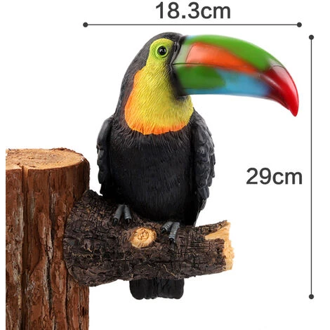 Figurine d’oiseau en résine Toucan Statue de jardin, Sculpture d’animal réaliste debout ornements d’arbre Figurine d’oiseau en résine Toucan