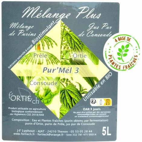 - Produit élaboré à partir de plantes fraîches, utilisable en agriculture biologique.
