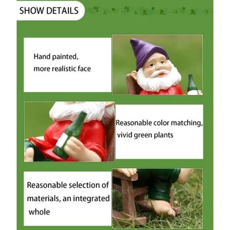 Résistant aux intempéries : cette statue de nain d’extérieur est imprimée avec de la peinture de qualité extérieure comme revêtement de protection, ne vous inquiétez pas de la décoloration, même en cas de forte lumière du soleil ou de forte pluie, résiste à toutes les conditions extérieures difficiles.