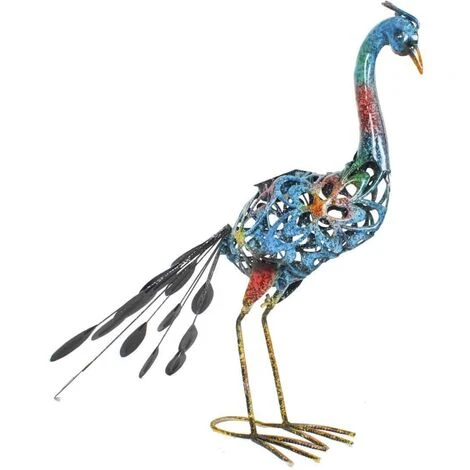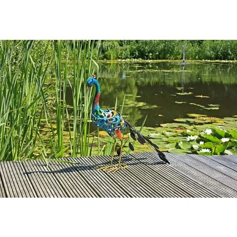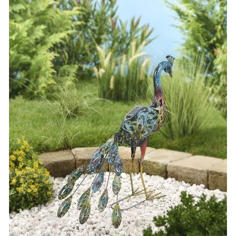 Très beau paon coloré en métal. Avec ce paon coloré, vous mettez un accent frappant dans votre jardin. Dans l’obscurité, le paon devient un point culminant grâce à son éclairage solaire