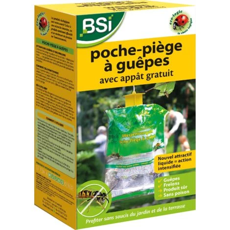 - . Le piège dispose d’un attractif naturel. Cet attractif attire les guêpes et frelons (dont asiatiques). Les premiers insectes attireront les suivants par le dégagement de phéromones. Le piège se suspend à l’aide d’une cordelette (Tenir à distance suffisante du lieu de repas).