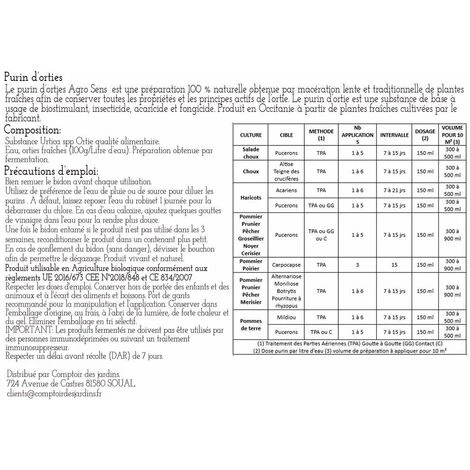 - FabriquĂ© avec 100g d’orties fraĂ®ches/Litre d’eau. Utilisable en agriculture biologique.
