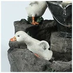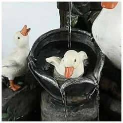 Animaux jouant dans l’eau : cette fontaine à boire de la famille des canards et des écureuils peut apporter de la joie et de la fantaisie à votre espace de vie extérieur. La particularité est que l’écureuil verse l’eau sur deux étages jusqu’au bas de la bûche, où un charmant petit oiseau attend.