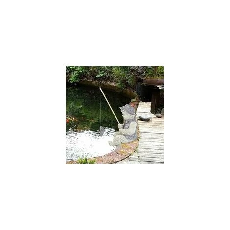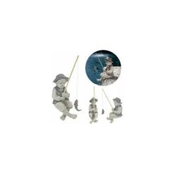 Ce petit pêcheur avec une perche en bois et un poisson suspendu réaliste est un cadeau parfait pour le bureau à domicile d’un pêcheur sur glace ou des décorations pour la pelouse de grand-père!
