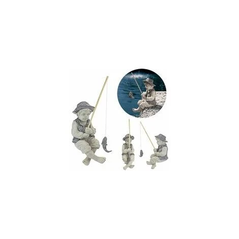 Moulé à la main en utilisant de la vraie pierre concassée liée à une résine de créateur durable, notre canne et notre moulinet transportant des figurines de Fisher Boys sont surmontés d’une finition en pierre blanche et grise résistante aux UV.