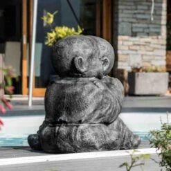 Choisissez la statue moines Shaolin enlacés 50 cm pour la décoration zen de votre intérieur ou de votre extérieur. Cette statue de jardin offre une ambiance relaxante et reposante. Autour d’un bassin ou sur votre terrasse, cet objet déco permet de créer un lieu accueillant. Laissez-vous attendrir par le regard de ces moines et voyager au sein de la culture asiatique ! Retrouvez toutes nos statues en fibro-ciment ici. Dimensions Longueur : 56 cm Largeur : 44 cm Hauteur : 50 cm Détails La résine utilisée pour la fabrication des objets de décoration est un amalgame de fibre de verre, de résine, de ciment et de durcisseur, rendant les objets particulièrement durs et robustes. Afin d’optimiser la longévité du produit, nous vous conseillons l’application d’un hydrofuge.