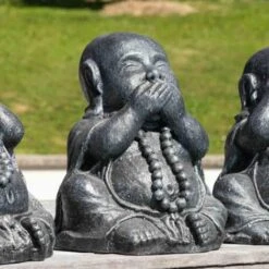 Très joli ensemble de trois Bouddha heureux en patinĂ© gris 40 cm. Ces trois statues de jardin sont idĂ©ales pour crĂ©er un intĂ©rieur ou un extĂ©rieur accueillant et chaleureux. Comme les trois petits singes chacun des Bouddhas se couvre une partie diffĂ©rente du visage avec les mains. Dans la culture asiatique la signification est la suivante « Ne pas voir le Mal, ne pas entendre le Mal, ne pas dire le Mal». En suivant cette idĂ©e, il ne vous arriverait que du bien ! Retrouvez toutes nos statues en fibro-ciment ici. Dimensions d’une statue Largeur : 28 cm Longueur : 35 cm Hauteur : 40 cm DĂ©tails La rĂ©sine utilisĂ©e pour la fabrication des objets de dĂ©coration est un amalgame de fibre de verre, de rĂ©sine, de ciment et de durcisseur, rendant les objets particulièrement durs et robustes. Afin d’optimiser la longĂ©vitĂ© du produit, nous vous conseillons l’application d’un hydrofuge.