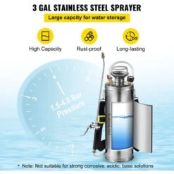 Acier Inoxydable Durable : Capacité : 10 L, pression : 1,5 – 4,0 bar. Le pulvérisateur est fabriqué avec acier inoxydable, il est résistant à la rouille et durable. Attention, l’anneau en caoutchouc et la conception interne ne conviennent pas aux solutions fortement corrosives, acides et basiques.