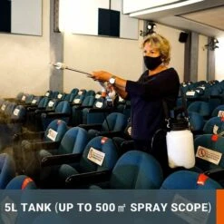 - Vous pouvez maintenant brancher n’importe quelle bouteille de 5 litres avec un goulot standard et emporter du désinfectant et de l’eau de Javel (à l’exception des produits chimiques à base d’alcool) un nettoyeur haute pression désinfectant entièrement portable.